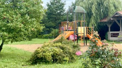 На участке большая беседка с летней кухней: печь, мангальная, вода. Гараж из ж/б плит 6*3,5 метров, бревенчатая баня на дровах с парилкой и душевой. теплица, дровник.