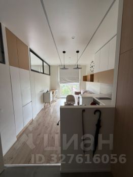 Особенности: Кухня-гостиная с барной стойкой, изолированная спальня, гардеробная, санузел в плитке до потолка с зеркалом с лэд-подсветкой.
