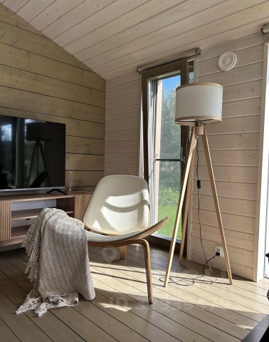 Стены и потолки обшиты имитацией бруса, обработанной дорогой немецкой пропиткой. Она не прячет, а подчеркивает рельеф и текстуру дерева. Каждая дощечка окрашена отдельно, вручную — это уровень мастерства, который видно.