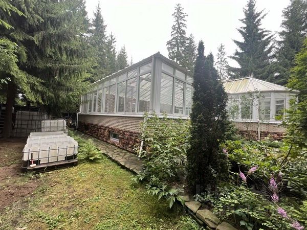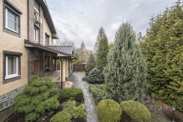На участке правильной формы: клинкерная тротуарная плитка на бетонной основе, газон с системой автополива, гараж на две машины с комнатой для рабочего, ворота с подъёмным механизмом на пульте, забор из облицовочного клинкерного кирпича, отдельно стоящий зимний гостевой дом, полностью оборудованный мебелью, с кухонным гарнитуром со встроенной техникой, с душевой и санузлом.