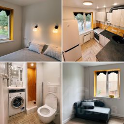 В апартаментах возможно размещение 3 человек. Спальные места: раскладывающийся диван, двуспальная кровать. Кухня оборудована необходимой посудой и техникой: газовая плита, холодильник, электрический чайник. К услугам гостей также безлимитный Wi-FI, утюг, гладильная доска, сушилка, фен, стиральная машина, постельное белье, полотенца, тапочки.