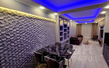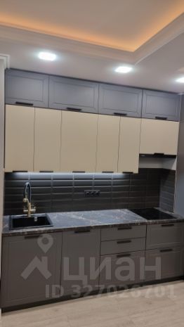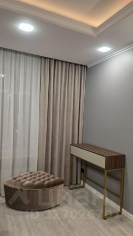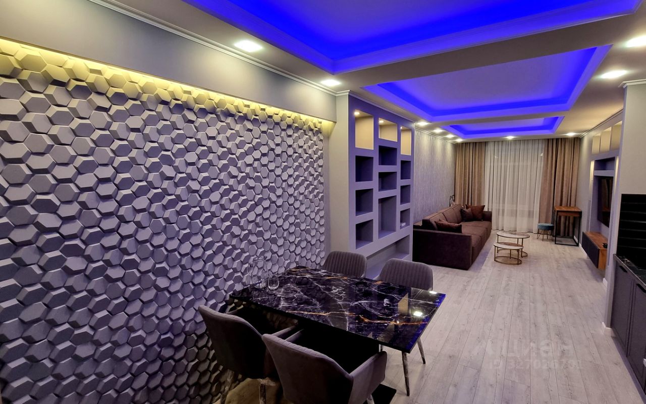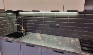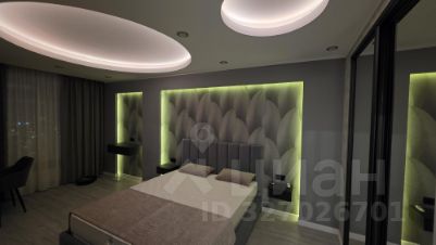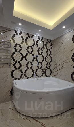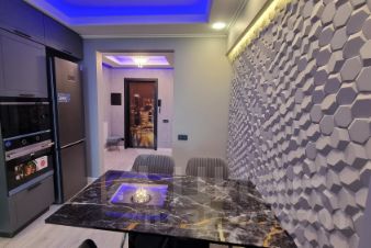 В квартире предусмотрена большая ванна, оформленная в эстетике: благородные текстуры, акценты светильников и безупречные линии сантехники. Спальня — приватная зона с мягким освещением, изящными декоративными элементами. Кухня выполнена в лаконичном стиле, объединённая с гостиной, что упрощает быт и создаёт комфортную среду для отдыха и приёма гостей.