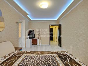 КВАРТИРА с хорошим ремонтом, раздельный санузел, двухуровневые потолки, напольное покрытие - ламинат и плитка, ЧЕТЫРЕ застекленные лоджии (одна объединена с кухней, большой коридор.