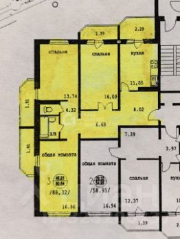 Общая площадь 80,7 кв.м. (без учета четырех лоджий), жилая 47 кв.м, кухня 11 кв.м. Изолированные комнаты, планировка - распашонка, окна выходят на запад, юг и восток.