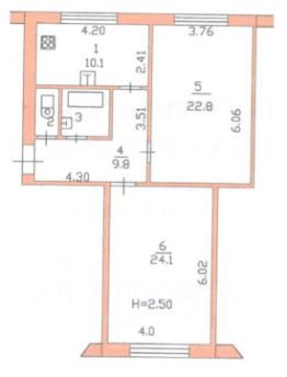 Комнаты раздельные 24,1 кв.м и 22,8 кв.м.