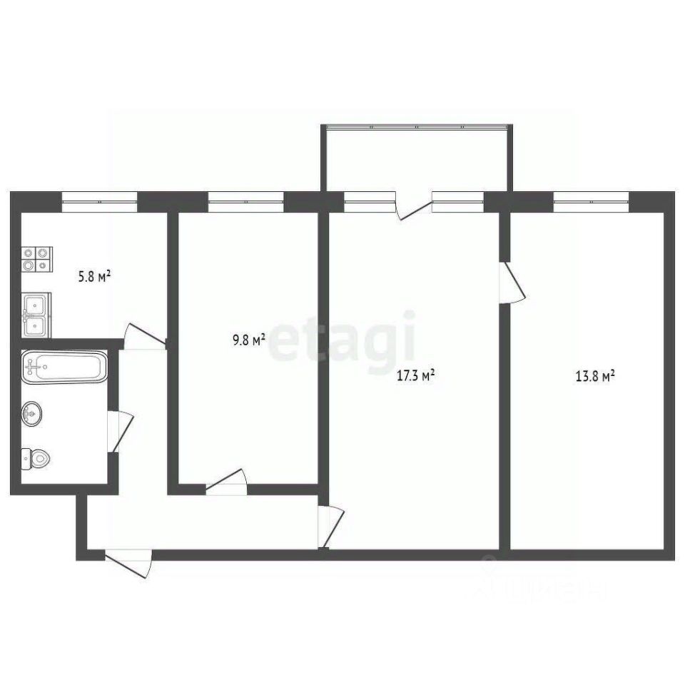 Квартира расположена на третьем этаже пятиэтажного панельного дома в спокойном районе Чернышевского города Серпухова. Планировка функциональная: три смежно-изолированные комнаты общей площадью 56.4 кв.м, что обеспечивает простор и возможность зонирования. Жилая площадь составляет 38.2 кв.м, включая гостиную 17.2 кв.м, спальню 12 кв.м и дополнительную комнату 9 кв.м. Кухня площадью 6 кв.м. Окна выходят во двор, обеспечивая тишину и приватность. Объект подготовлен под чистовую отделку: выполнена стяжка пола, выровнены и заштукатурены стены, установлены пластиковые окна и новая металлическая входная дверь. Санузел требует проведения ремонта. Инфраструктура района развита: в шаговой доступности находятся школы 5 и 16, детские сады, поликлиники, аптеки, сетевые магазины. Рядом расположены сосновый бор, стадион "Спартак" и река Нара для отдыха и прогулок. Транспортная доступность хорошая, с удобным выездом на основные магистрали. Во дворе оборудованы детские и спортивные площадки, есть свободные парковочные места. Подъезд и территория дома содержатся в порядке. Квартира свободна от проживания, один взрослый собственник, право собственности оформлено более пяти лет назад. Возможна покупка с использованием ипотечного кредитования или жилищных сертификатов.