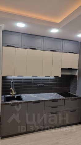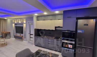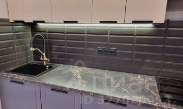 В квартире предусмотрена большая ванна, оформленная в эстетике: благородные текстуры, акценты светильников и безупречные линии сантехники. Спальня — приватная зона с мягким освещением. Кухня выполнена в лаконичном стиле, объединённая с гостиной, что упрощает быт и создаёт комфортную среду для отдыха и приёма гостей.