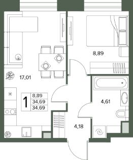 Общая площадь34,69 м²