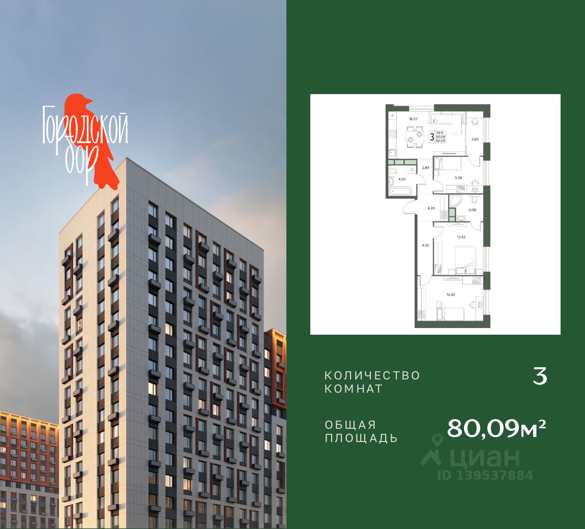 Продается 3-комн. квартира, 80,09 м²