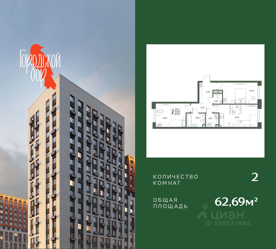 Общая площадь62,69 м²