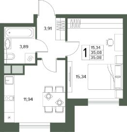 Общая площадь35,08 м²