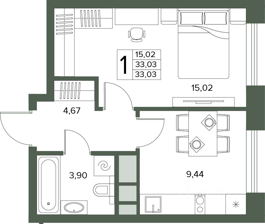 Общая площадь33,03 м²