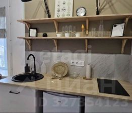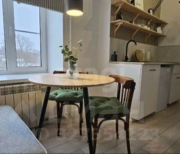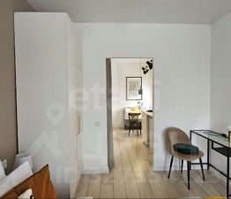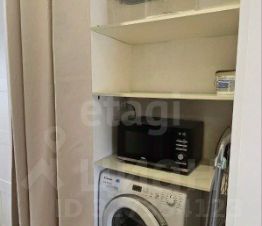 Эргономичная планировка позволяет на небольшой площади разместить все необходимое: оборудованную индукционной варочной поверхностью и местом для посудомоечной машины кухню, обеденную зону, спальню с кроватью 160х200 и системой хранения, а также хозяйственную нишу со стиральной машиной. Санузел совмещенный, с душевой кабиной, установлена абсолютно новая душевая система.