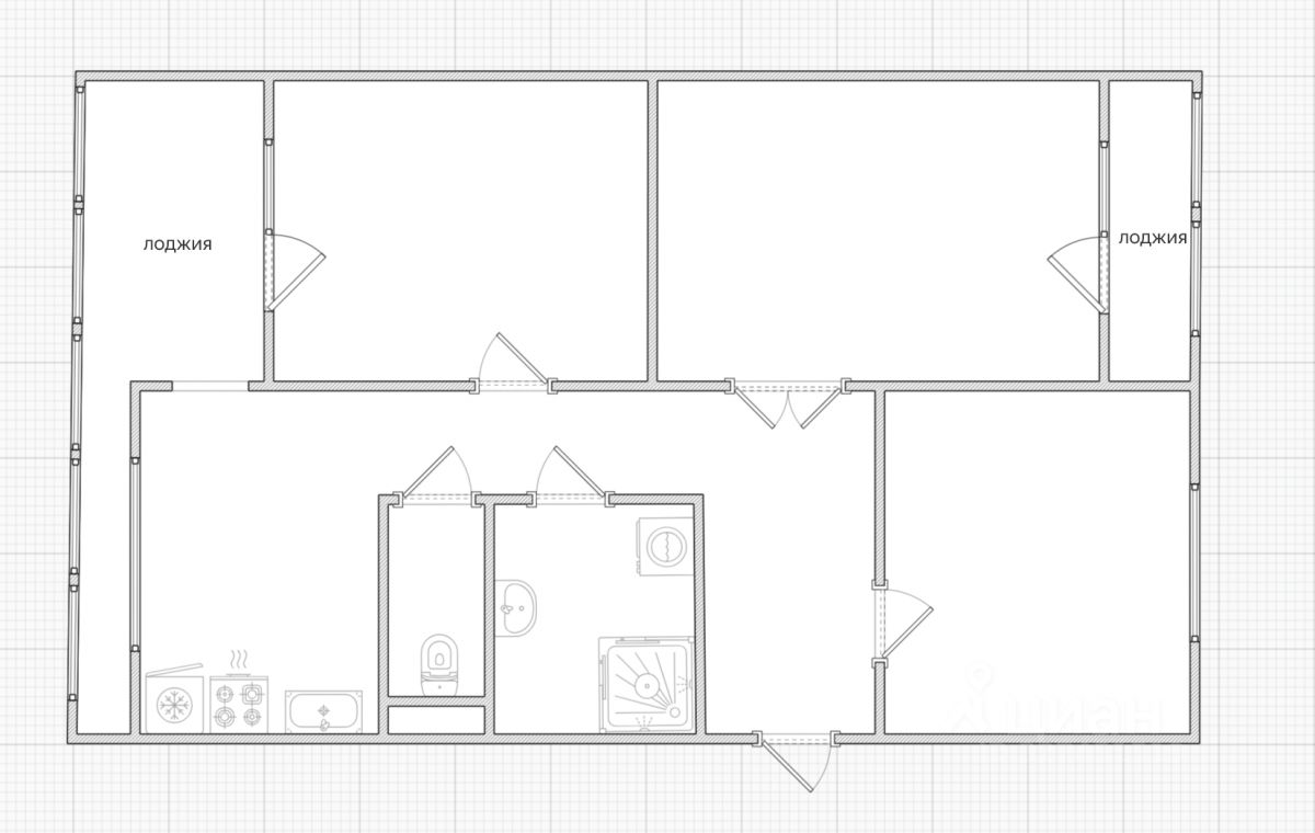 Квартира расположена на 8 этаже 9-этажного монолитного дома 1995 года постройки. Общая площадь - 74 кв. м. Площадь кухни - 11 кв. м. Квартира в жилом состоянии. Изолированные комнаты. Тип планировки распашонка (окна выходят на две стороны дома). Раздельный санузел. Есть две больших остекленных лоджия с выходом из кухни и комнаты.