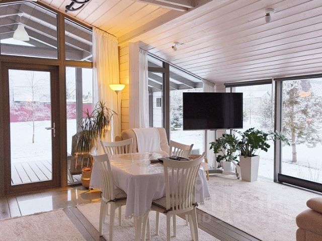 В доме три комнаты: кухня-гостиная с панорамными окнами (35кв.м), большая спальня с панорамным окном (14кв.м), маленькая спальня или комфортный кабинет (6кв.м) с панорамным окном и удобным рабочим местом, ванная с окном, большая веранда (24кв.м). Зона барбекю имеется. Открытый большой участок 18 соток.